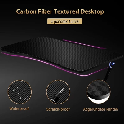 - Spacious Desktop with Ergonomic Curve: To ensure your performance on the battleground, the gaming table provides a 43.5” x 23.5” desktop for holding various gaming supplies, such as monitors, keyboards, game controllers and more. Meanwhile, the desktop with 2 curved edges not only make it comfortable to rest your arms and body, but also leave room for backward wires.