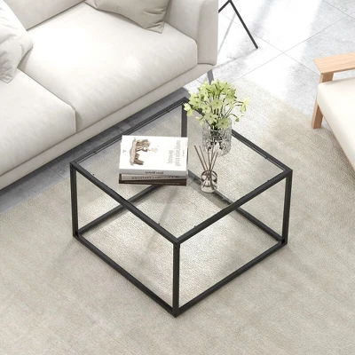 Enhance the aesthetics of your home with this modern glass coffee table. Thick tempered glass tabletop is resist to high temperature(up to 302℉) and the sleek surface is easy to maintain. Plus, sturdy metal frame is not easy to crack or deform. Large glass top not only offers spacious storage space, but also provides ideal place for home office activities. This minimalist coffee table combines modern simplicity and classic practicality, making it a perfect centerpiece for your home!