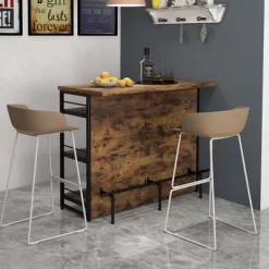 - Elegant Industrial Style: The entertainment bar table comes with delicate wood grain, offering an industrial flair to decorate your space. Moreover, it is compatible seamlessly with different places to offer an eye-catching spot.