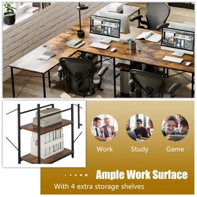 Are you looking for a large work table for your home office? Take a look at this convertible L-shaped computer desk! You can put it together as an L-shaped desk that fits snugly in the corner, or make it into a 95″ long desk for 2 people to work together. Whichever you choose, the computer desk provides the same large surface for your computer monitors, keyboards, printers or file folders. Moreover, there is also plenty of storage space in the shelves underneath, getting the essentials close at hand without cluttering the tabletop. To support the large weight, the executive desk is crafted from superior boards and robust metal pipes. Ours is definitely more durable than others made of flimsy board. And it’s nice that the large corner desk is equipped with adjustable foot pads, thus to prevent wobbling or shaking during use.