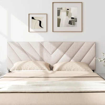 Give your existing bed frame a new look with this upholstered headboard. Selected quality materials make this modern headboard solid and long-lasting. The breathable linen fabric and high-density sponge filling provide you with a more comfortable experience. Thanks to the solid wood legs, this bed backboard has a stable frame that will hold up well for years to come. What’s more, 2 adjustable options are capable of catering to full/queen bed frames. The simple yet chic design makes this headboard a perfect addition to your bedroom.