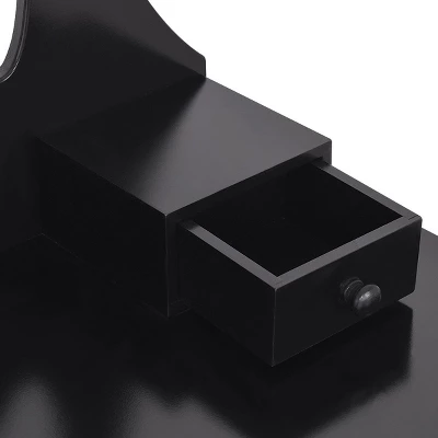 - 【Pretty Dressing Table with 3 Functional Drawers】Our makeup table comes with 3 drawers, 2 on the mirror stand and 1 large drawer with the table. Large cosmetics like eyeshadow compact can be put in the drawers while small items like nail polish, earrings or lipsticks can be stored on tabletop boxes.
