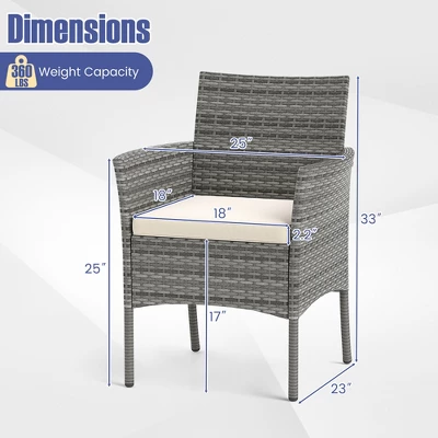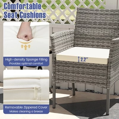 - Comfort Meets Convenience: Each patio armchair is equipped with a soft padded cushion that invites you to relax in pure comfort. The cushions feature removable zippered covers for easy cleaning, so you can keep your outdoor conversation area looking pristine with minimal effort.