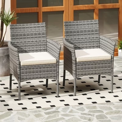 - Selected Premium PE Rattan: Meticulously crafted from high-quality hand-woven mix gray PE wicker, these 2 breathable rattan patio chairs not only resist fading and sun damage but also maintain their eye-catching appeal through all seasons, ensuring long-lasting durability.