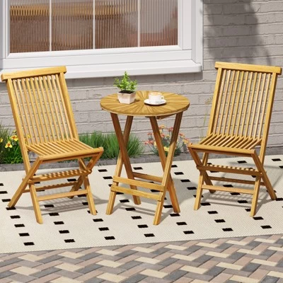 Enhance your relaxation area with this round side table.Made of premium teak wood, the outdoor end table boasts longer life span and higher sturdiness. Plus, the X-shaped frame supports the bistro table securely. You can fold and unfold the side table for quick set up and take down, providing a versatile and practical surface wherever needed. This compact design ensures that the side table can be effortlessly tucked away when not in use. Perfect for hosting drinks, displaying plants, or holding books as you relax outdoors or indoors, this end table combines practicality with an understated elegance.