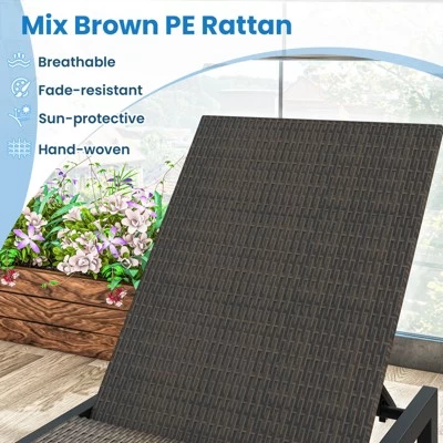 - Long-lasting PE Rattan: Crafted from a fade-resistant and sun-protective mix brown PE rattan, this patio chaise lounge chair offers long-lasting outdoor durability. Additionally, the PE wicker’s breathability ensures a comfortable lying experience.