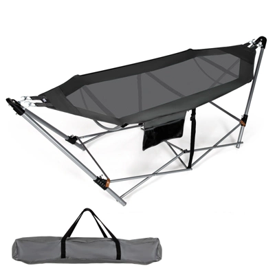- 【Compact & Portable Design】 This portable collapsible hammock measures 43.5” x 8” x 6” (W x D x H) when folded, easy to store. Besides, comes with a carrying bag, the free-standing hammock can be taken out and stored effortlessly.