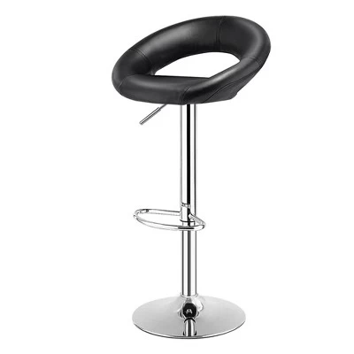 Tangkula Set Of 4 PU Leather Bar Stools Adjustable Kitchen Counter Chairs Black
