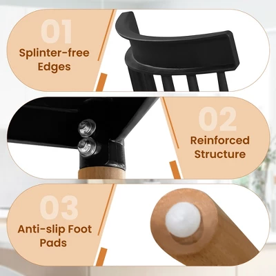 Sit down on our Windsor dining chairs to enjoy meals and socializing!!!Supported by high-quality beech wood legs, our dining chairs keep reliably sturdy and steady for long-lasting sitting. You can use the chairs in kitchens, dining rooms, restaurants, etc. The spindle backrest and curved seat offer you a comfortable sitting experience. The Windsor chairs are equipped with rounded corners and splinter-free edges for higher security. Additionally, our chairs are crafted with reinforced structure and anti-slip foot pads to add more stability to give you peace of mind.