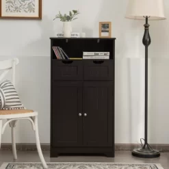 Multi Function— This floor storage cabinet is designed for various places – bathroom, laundry room, living room, kitchen, entryway, restroom. It can also be used as bookcase or file cabinets.